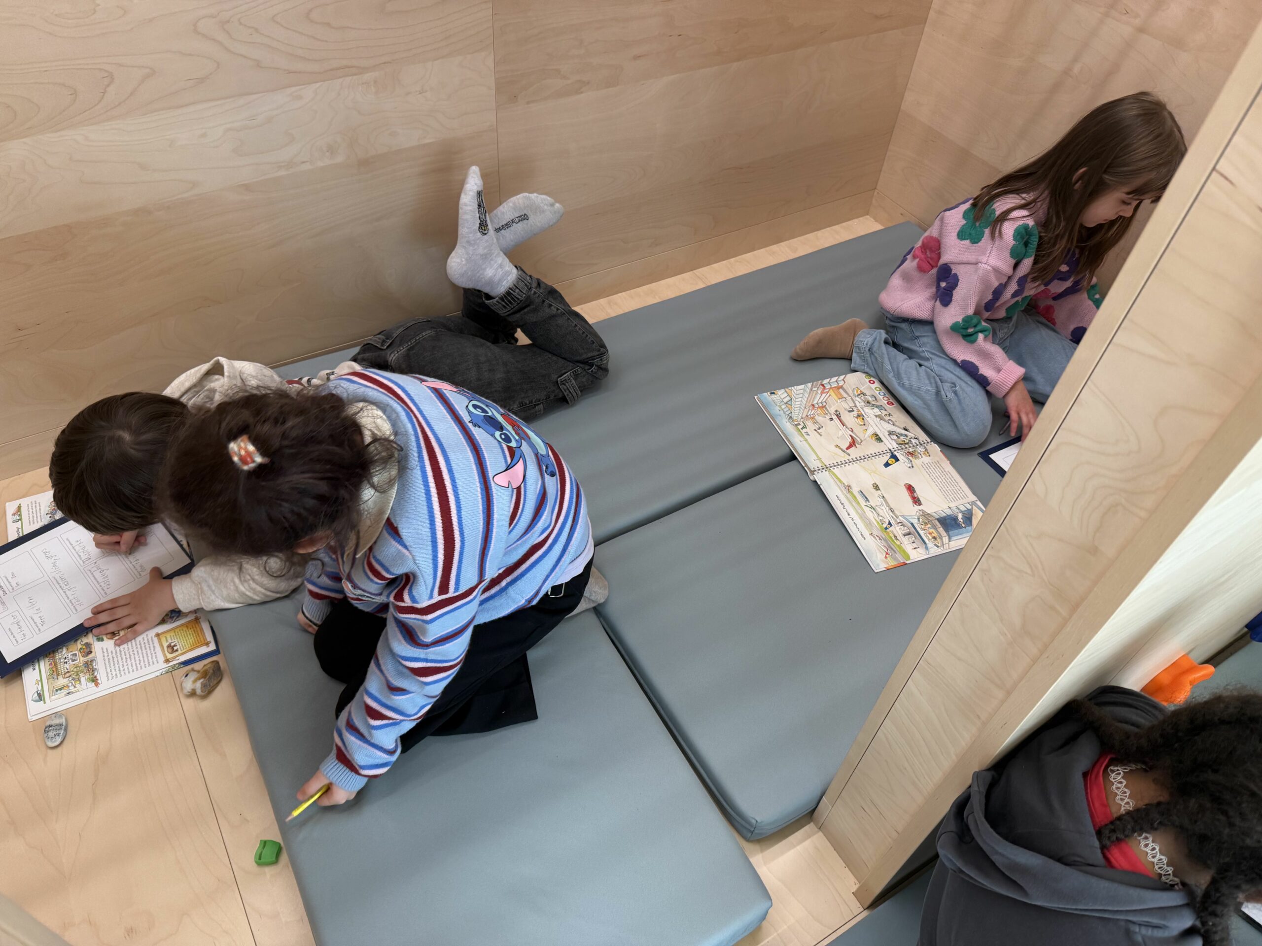 Die Arbeit im Literacy Lab ermöglichte den Kindern einen besonders motivierenden Zugang zum Lernen: In einer anregenden Umgebung konnten sie eigenständig arbeiten, sich austauschen und ihre Ergebnisse sichtbar machen. Die Stimmung war geprägt von Neugier, Engagement und auch einer gewissen Anstrengung – besonders beim Präsentieren vor der Gruppe. Umso größer war am Ende der Stolz, die Aufgabe erfolgreich gemeistert zu haben.