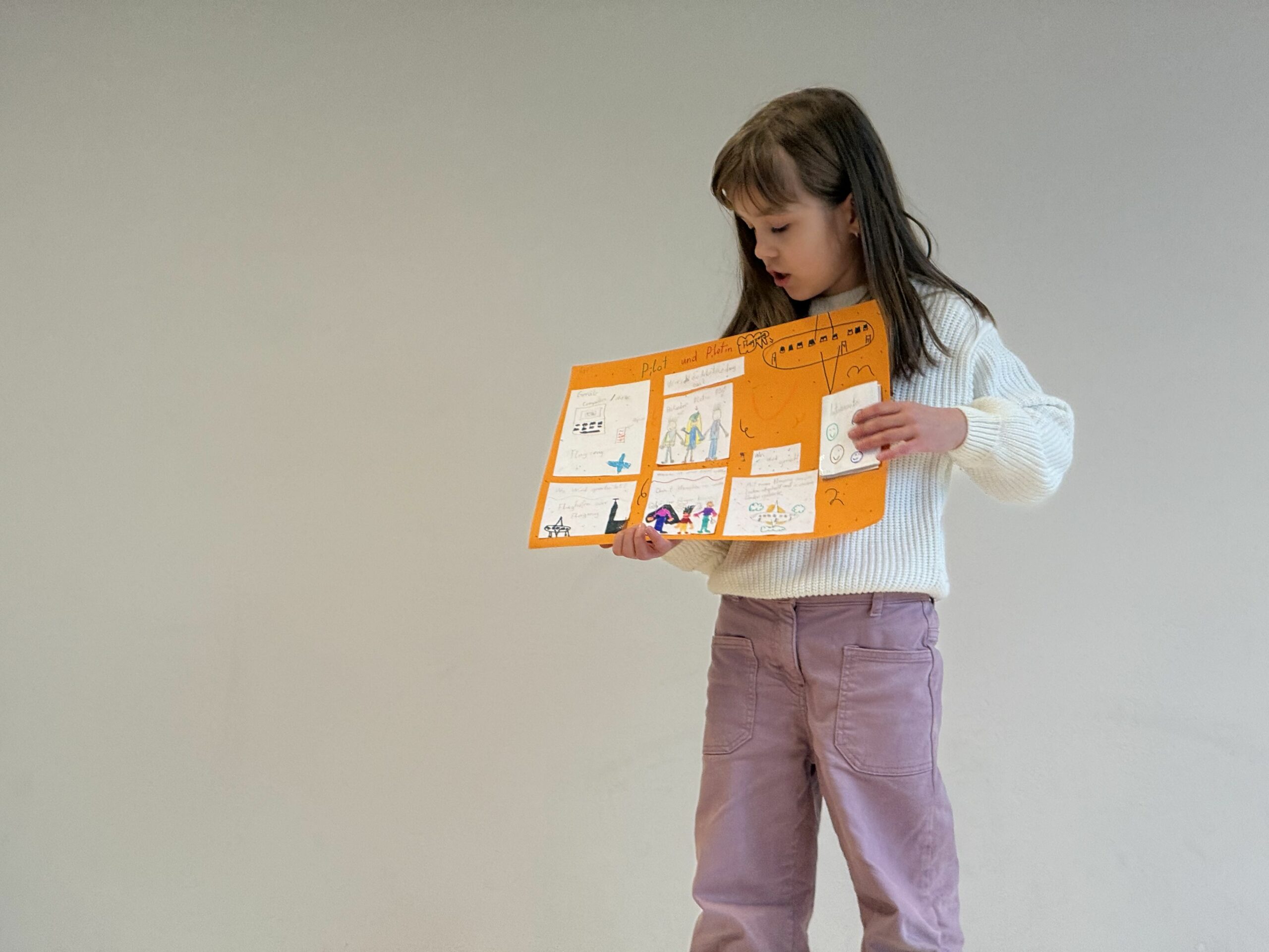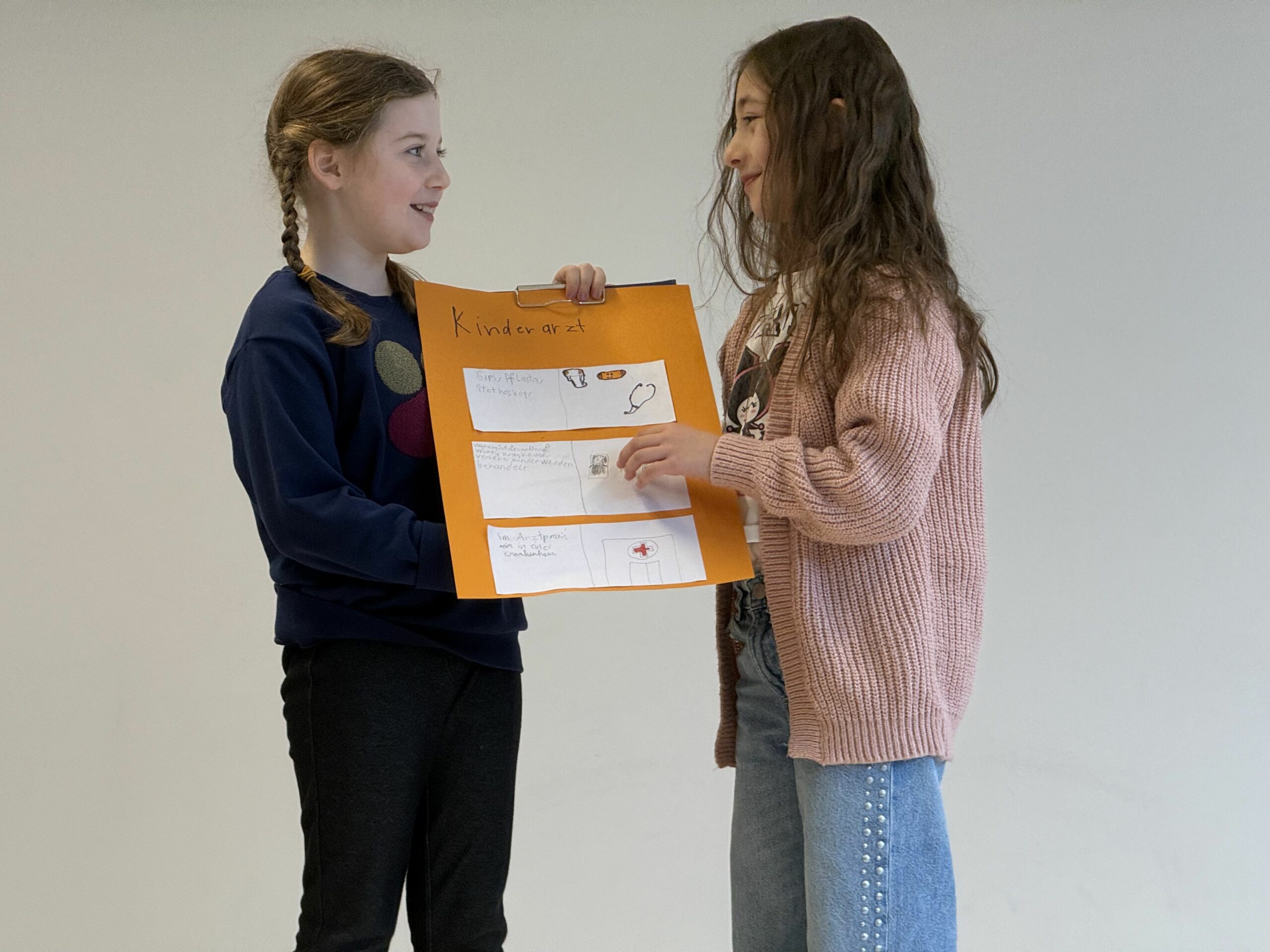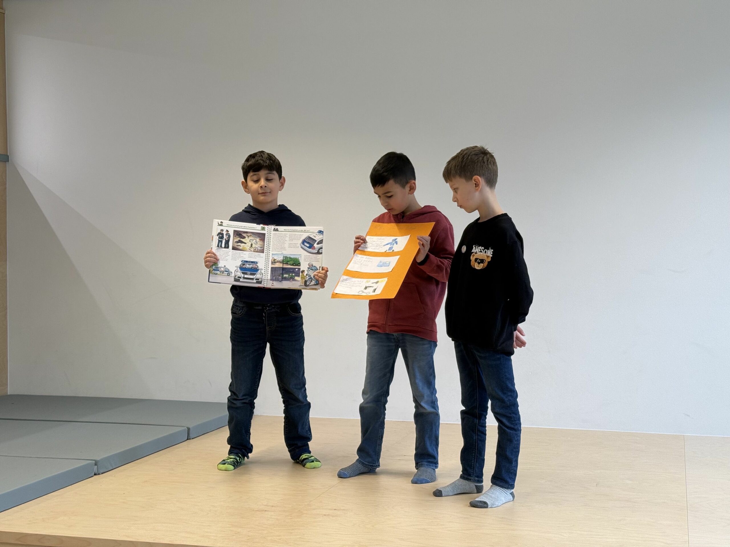 Im nächsten Schritt bereiteten sich die Kinder auf ihre Präsentationen vor. Sie übten, ihre Inhalte verständlich vorzustellen und ihre Mitschüler:innen über die jeweiligen Berufe zu informieren. Dabei wurden nicht nur Lesekompetenz und das Erkennen wesentlicher Informationen gefördert, sondern auch das strukturierte Zusammenfassen sowie die Auftrittskompetenz gestärkt.