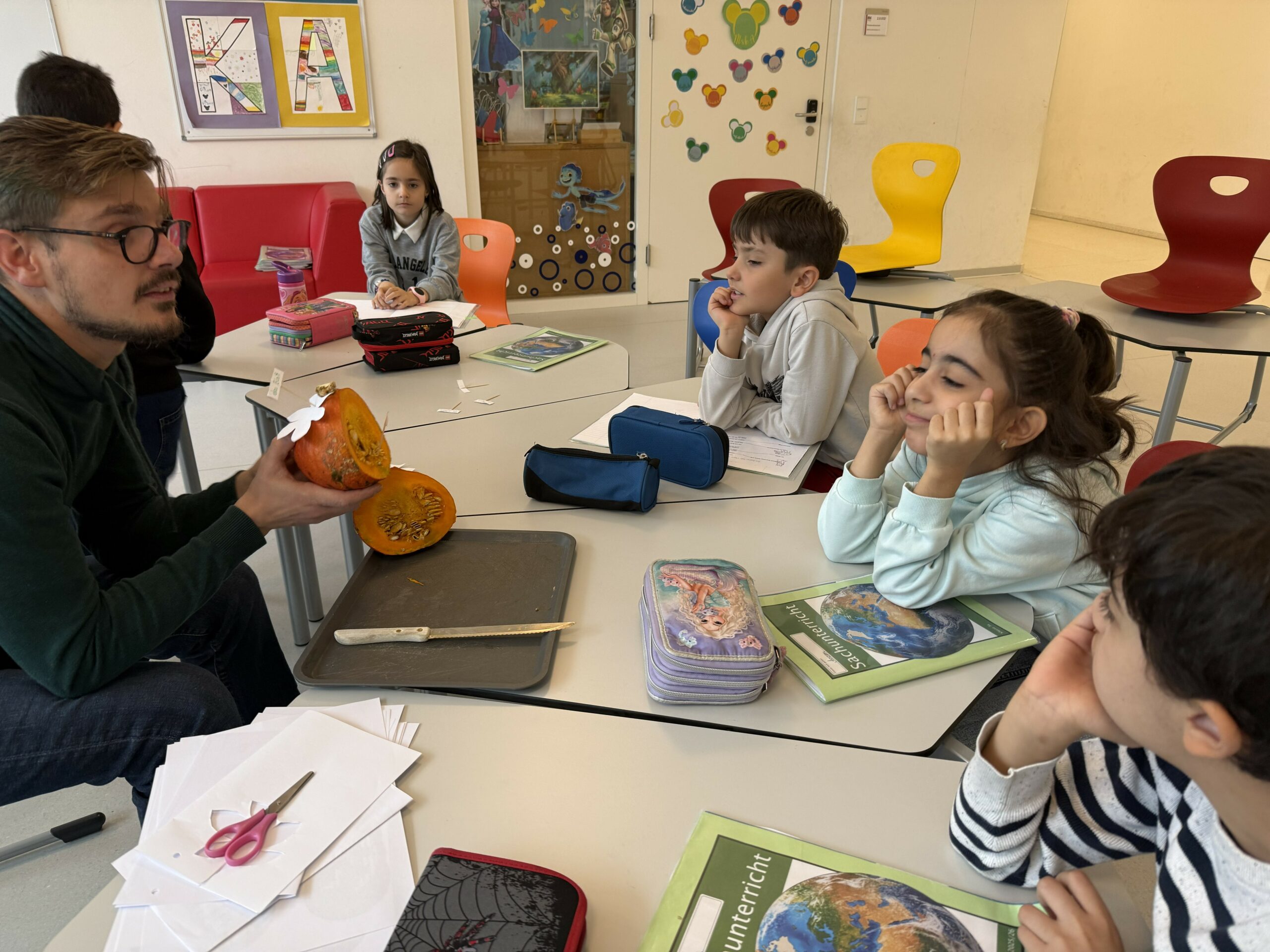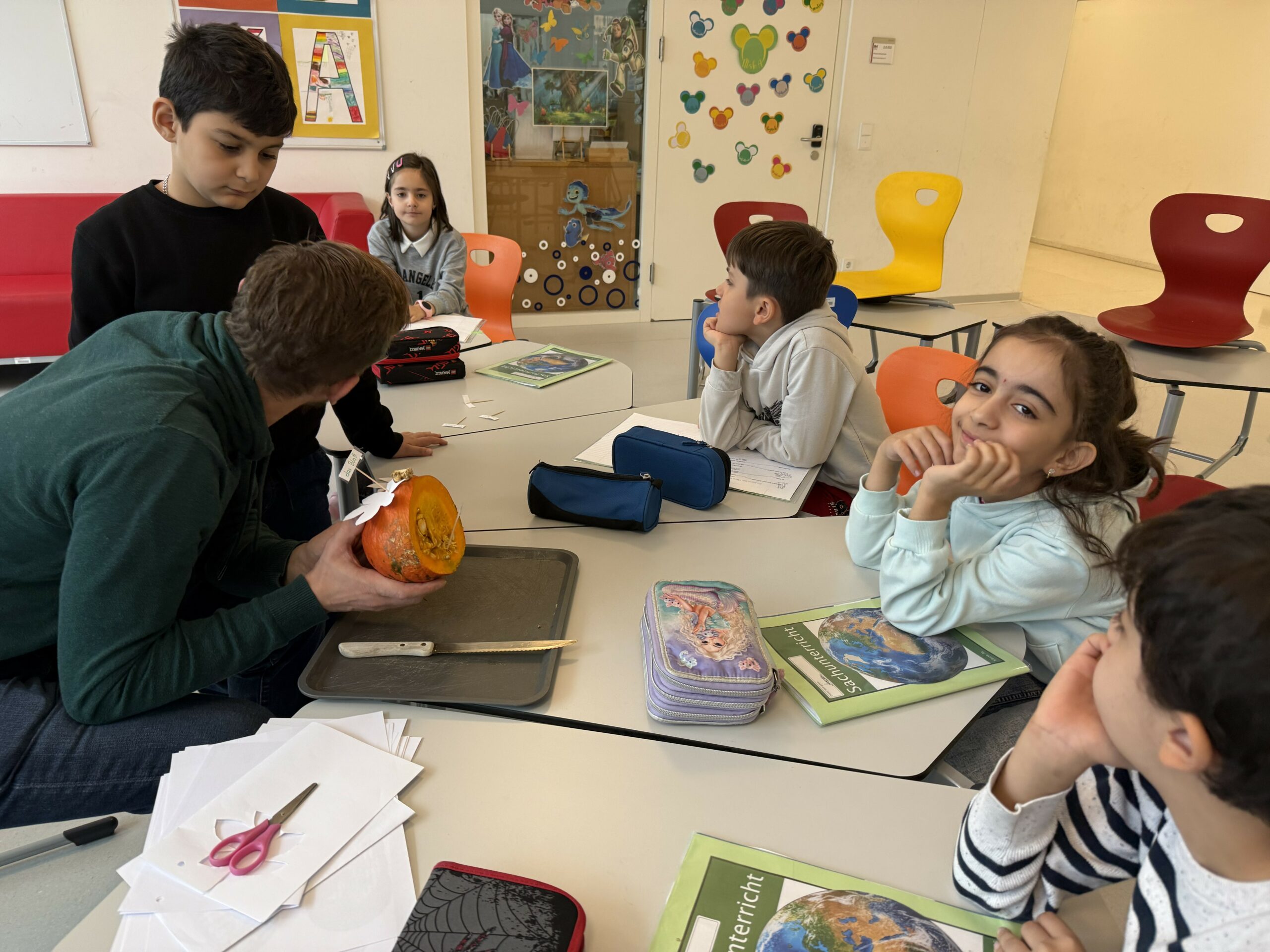 Im Mathematikunterricht beschäftigten sich die Schüler:innen beispielsweise mit spannenden Schätzaufgaben – etwa der Frage: „Wie viele Autos sind im Kübel?“ – und überprüften anschließend ihre Vermutungen durch gemeinsames Zählen und Vergleichen. In Deutsch und Sachunterricht erforschten sie, wo Tiere leben – auf der Wiese, im Wald, im Stall oder im Wasser – und setzten sich in Kleingruppen intensiv mit dem Thema Kürbis auseinander. Sie lernten die verschiedenen Teile des Kürbisses kennen und erfuhren, wie dieser wächst und geerntet wird.
